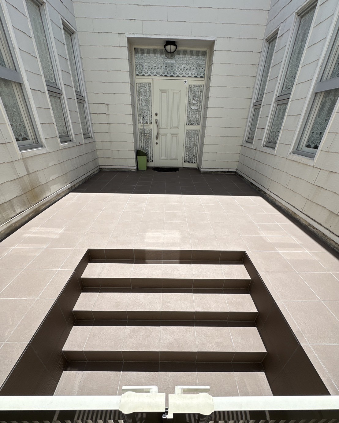 玄関やポーチなど、汚れが落としやすく濡れても滑りにくいタイルをご提案いたします。タイルの大きさ、カラー、質感も様々取り揃えてご紹介いたします。大き目のタイルですと目地が少なくなるので長持ちします。壁や塀など経年劣化によるひび割れは左官で保護・補修すると見栄えも良くなり、内壁の劣化も防げます。